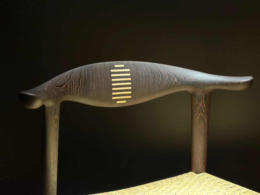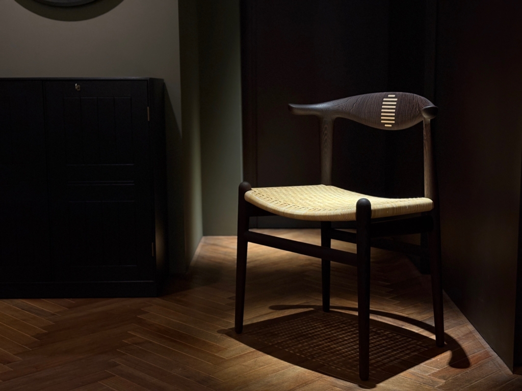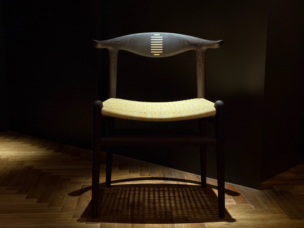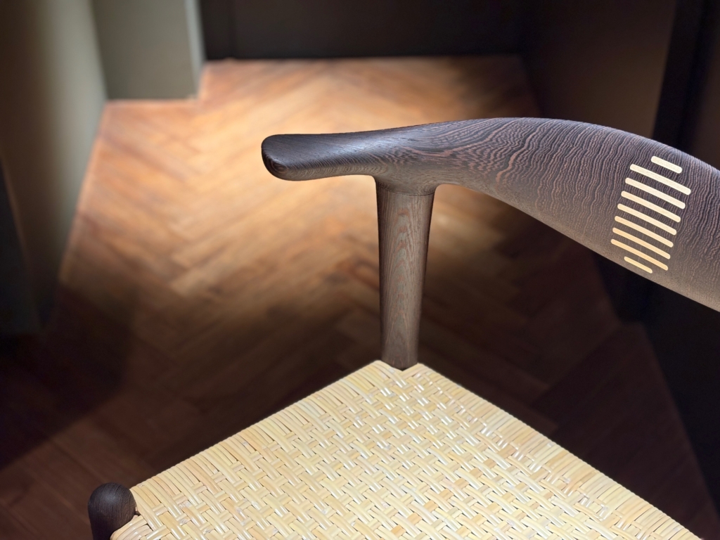 現在店舗では2025年12月2日~12月26日まで、PPモブラーより発表された2025年レアエディションのうちウェンジ材を用いたPP505 Cow Horn Chair(カウホーンチェア)を展示しております(事前予約制)。展示の椅子はウェンジ材に千切りの材としてメープルが用いられており、色の対比と意匠を是非ご覧いただけますと幸いでございます。