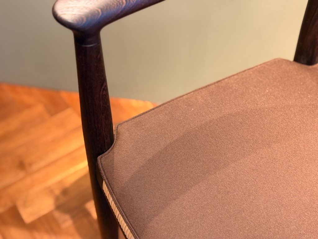 PPモブラー社で製作しているハンス・ウェグナーデザインの椅子 PP501ザ・チェア。座面が籐張り仕様のPP501ザ・チェアにお使いいただけるシートクッションを当店オリジナルで誂えましたためご紹介いたします。
