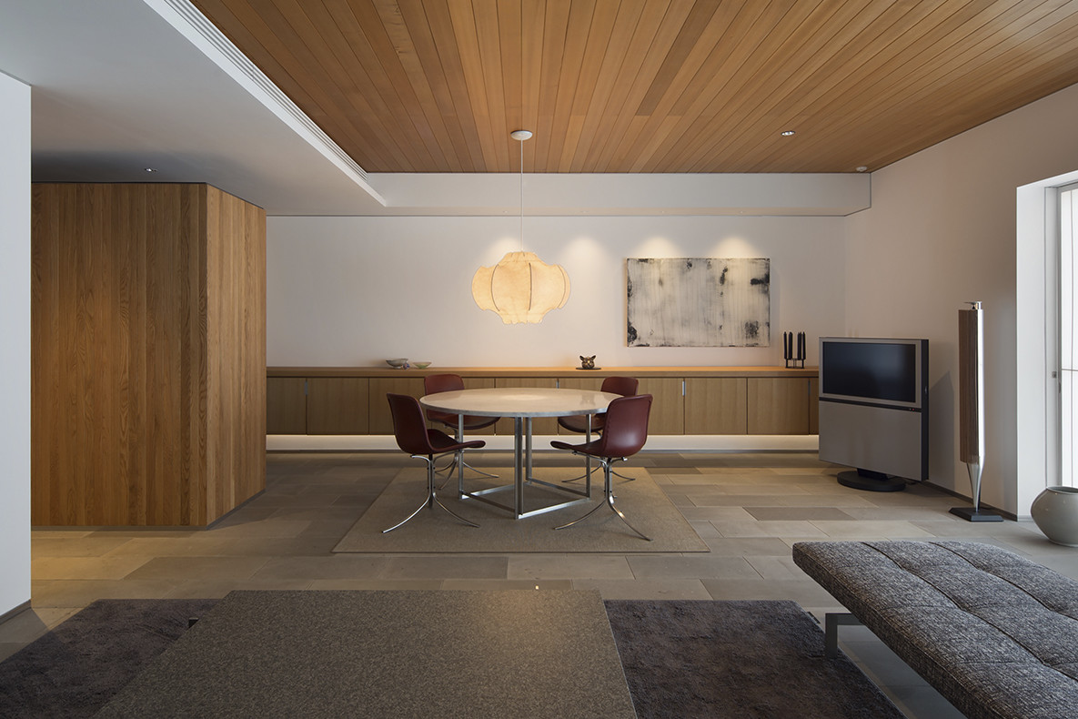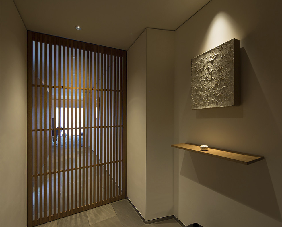 照明計画をはじめとした空間全体の光のコントラスト・陰影・反射が大変奥深く、物静かで上質な空間となっています。