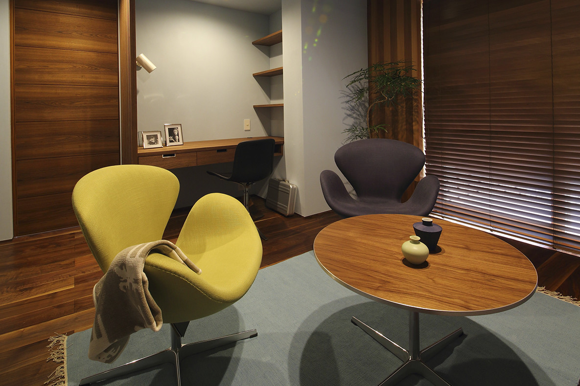 モデルハウスの物件。エッグチェア、スワンチェアなど、アルネ・ヤコブセンデザインの家具を中心に納品いたしました。