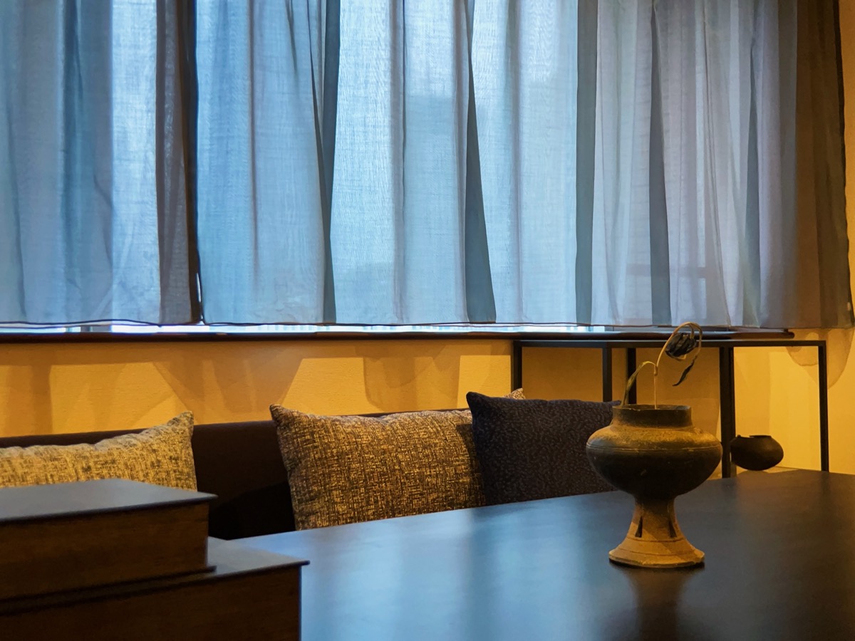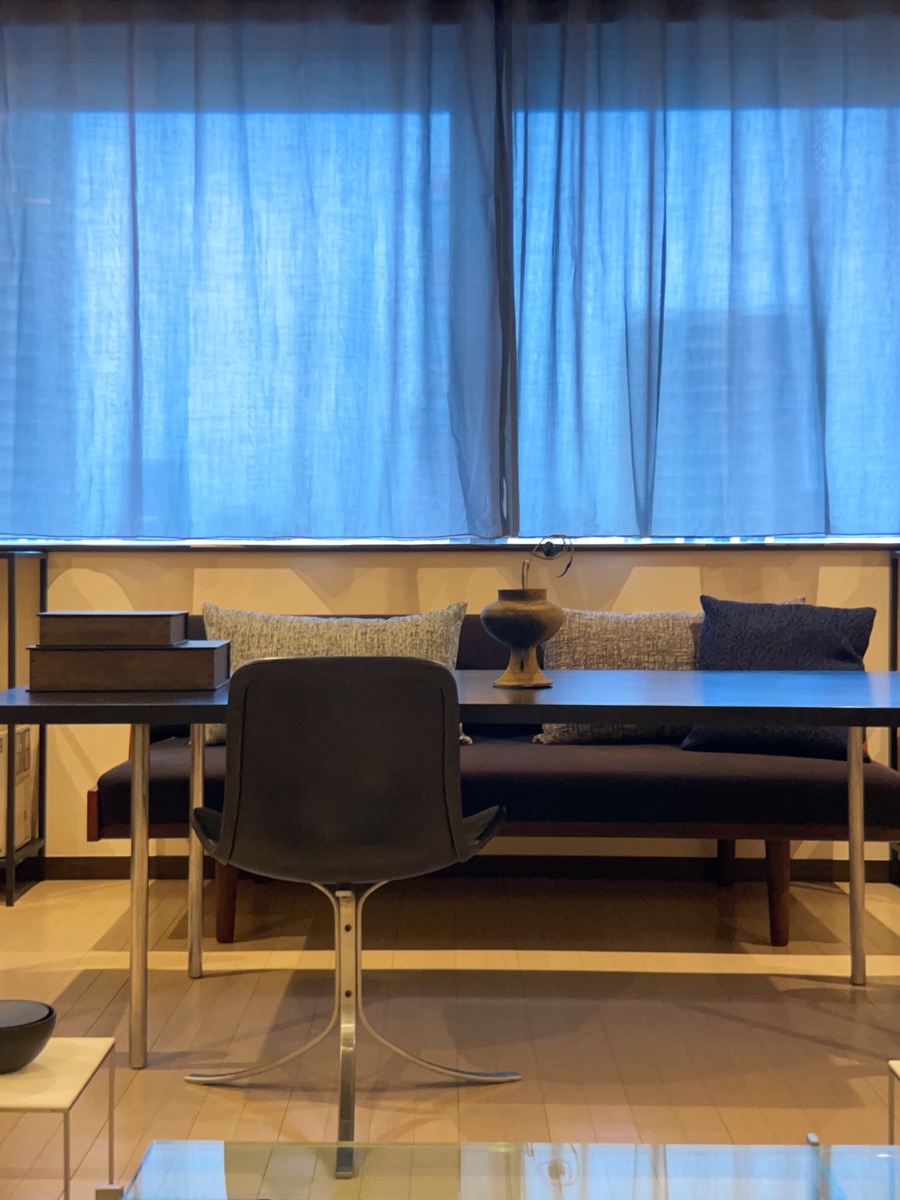 アートや骨董・古美術のコレクターでもあるお客様のご自宅に、カーテンや照明を納品させていただきました。