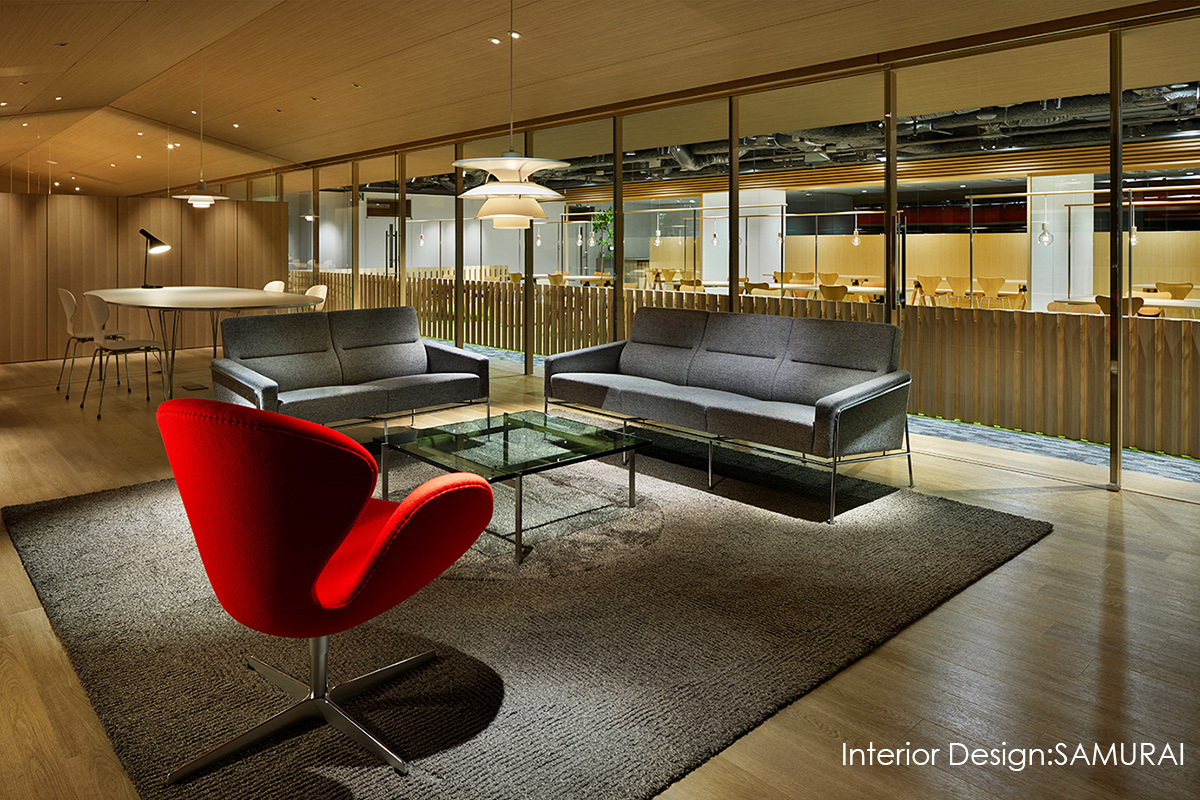 オフィス空間に、アルネ・ヤコブセンデザインの家具や、ポール・ケアホルムデザインのPKシリーズなどを納品いたしました。